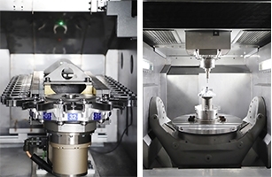 This five-axis five-linkage vertical precision machining center has an AC layout of the rotating axis and a crane-type structure. The overall structure is compact, the footprint is small, and the integral casting bed is used. It has good static and dynamic rigidity, thermal stability and vibration absorption.